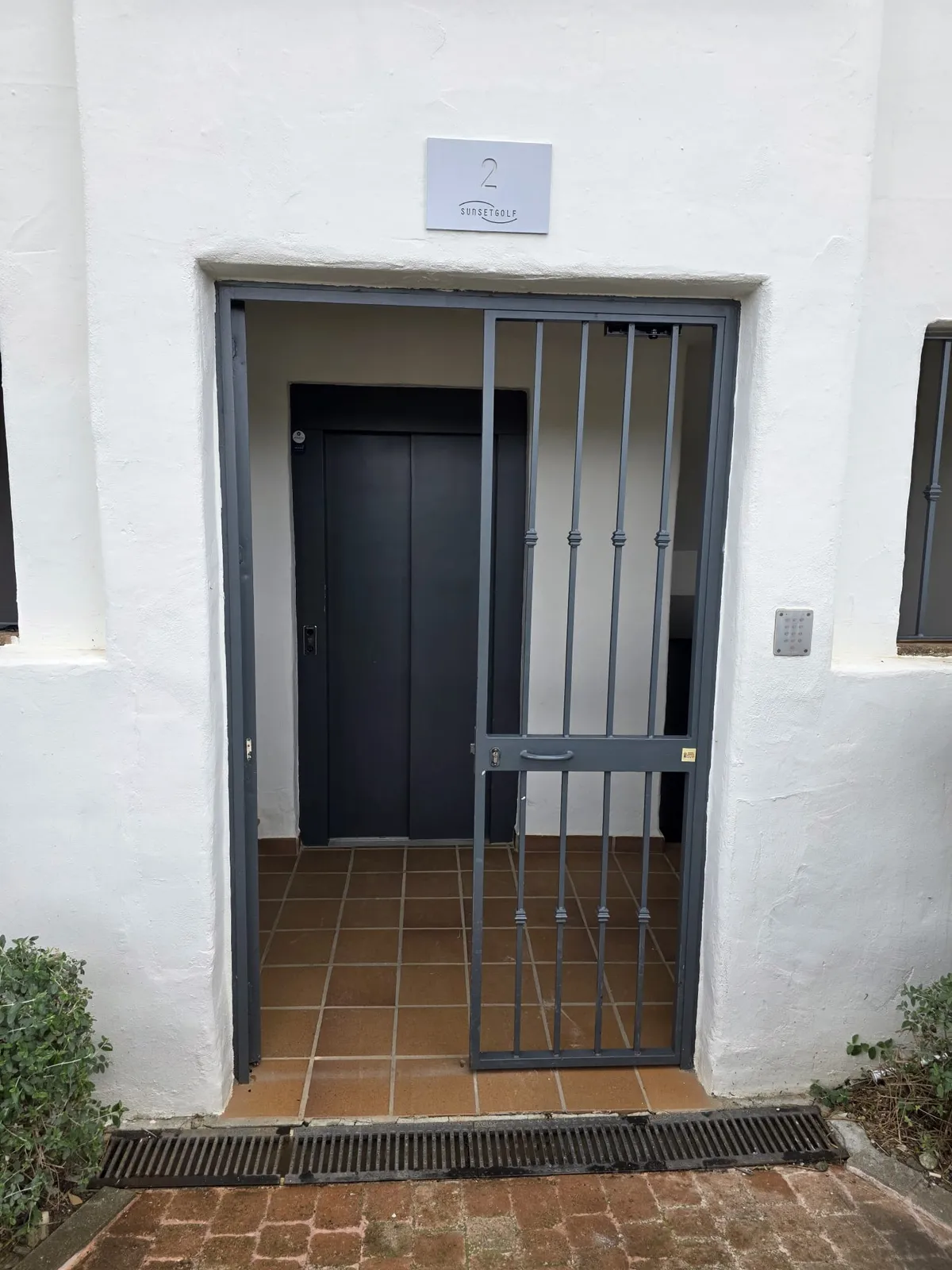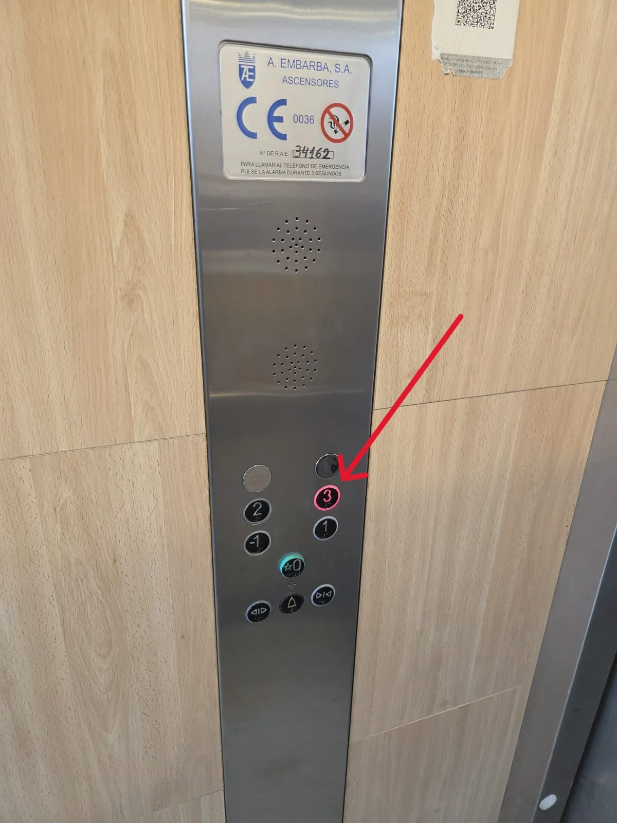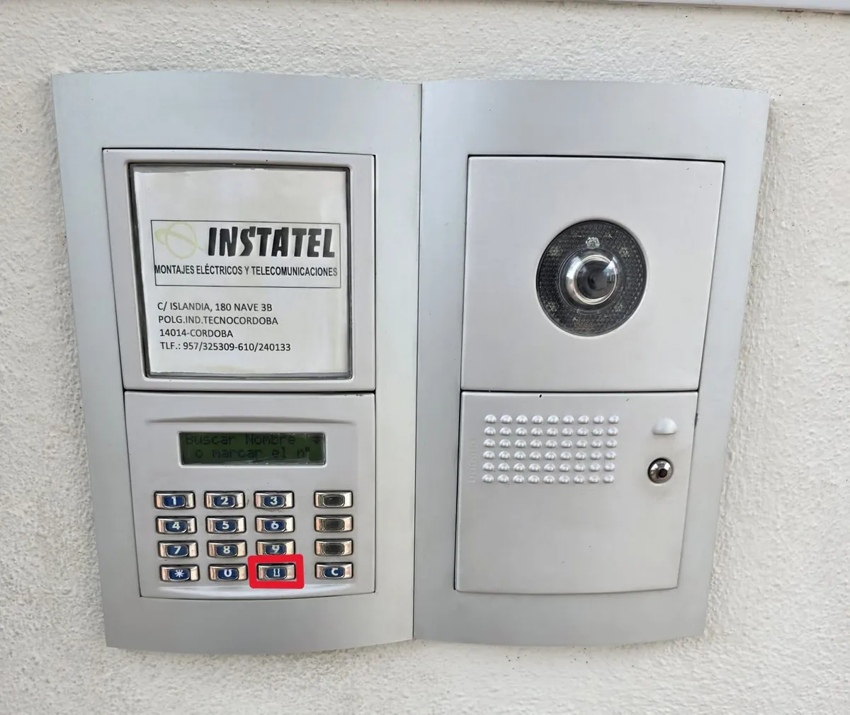 Als er geen portier zit kun je met een code naar binnen. Druk eerst op de knop zoals op de foto en voer daarna in: 12345